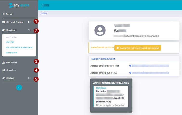 Une fois connecté, cliquez sur « Accès étudiant » pour accéder à votre espace MyHEPN, qui centralise toutes vos informations académiques et administratives.